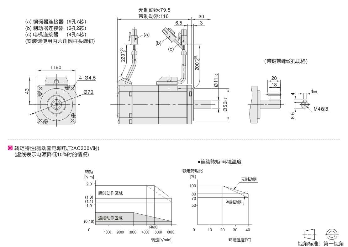 200W | AC200V | 0.64 | 1.91 | IP65 | 轴:带键带螺纹孔 制动器:无 油封:有 |