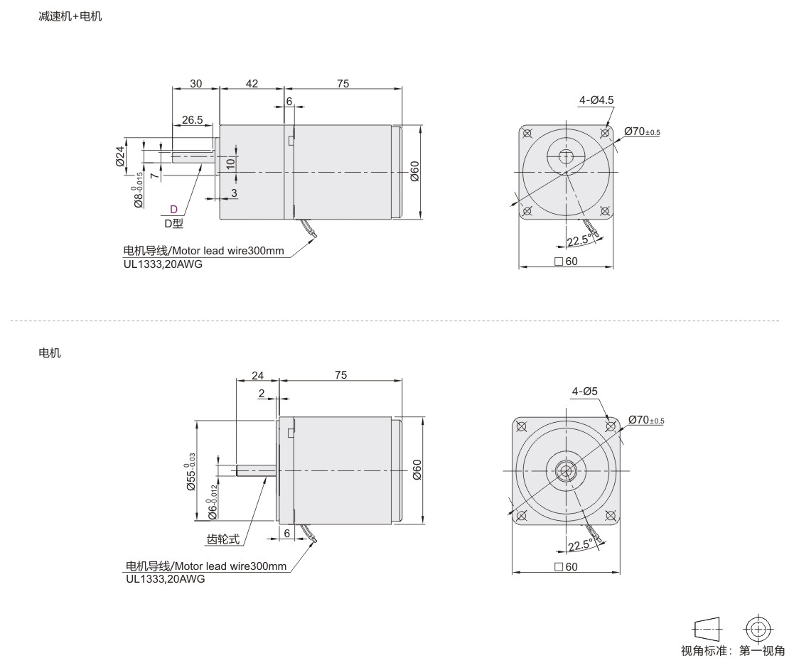 减速比25、30、36、50的电机反方向回转,其余减速比电机同一个方向回转。