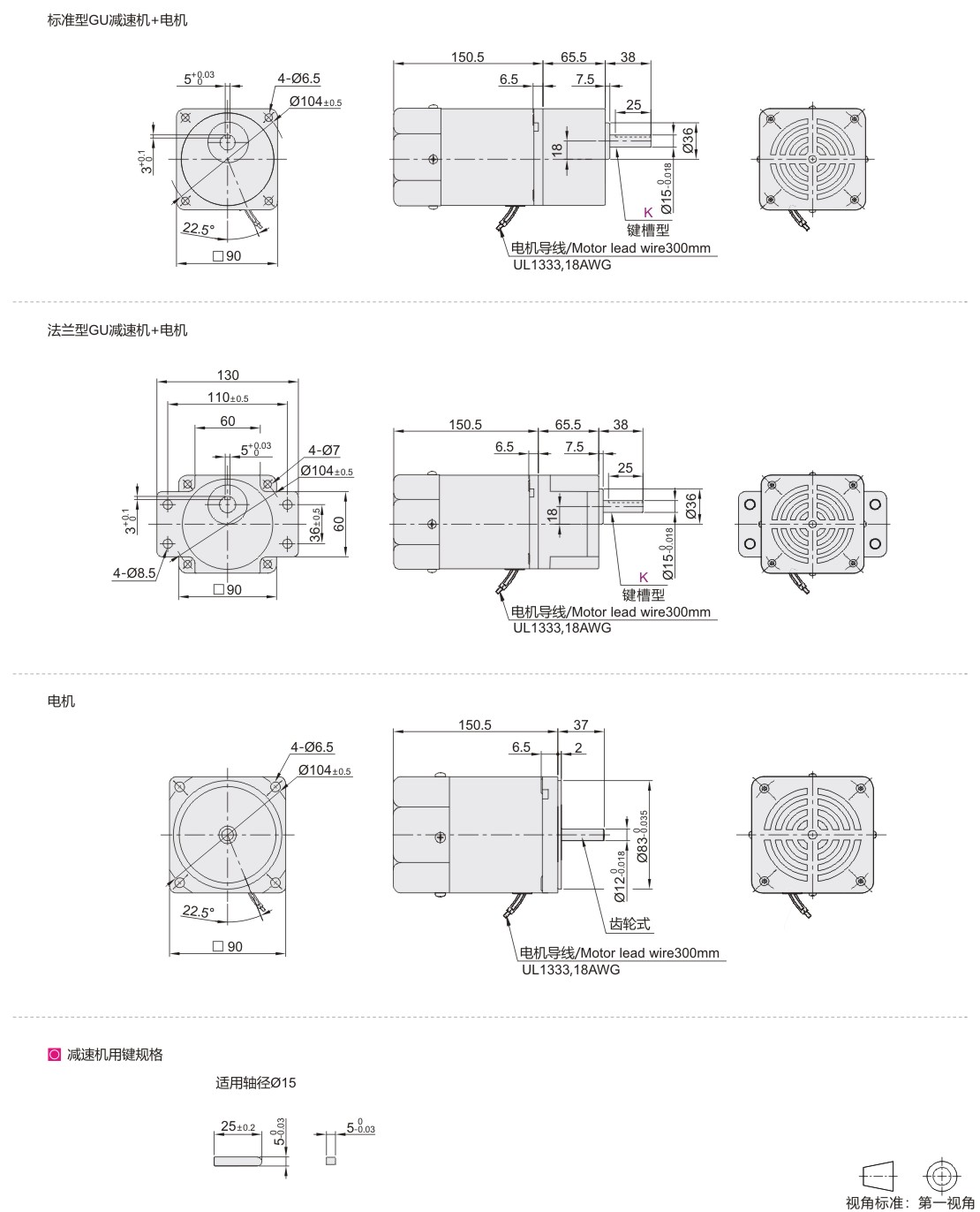 减速比12.5,15,18,90,100,120,150,180,200的电机反方向回转,其余减速比电机同一个方向回转。