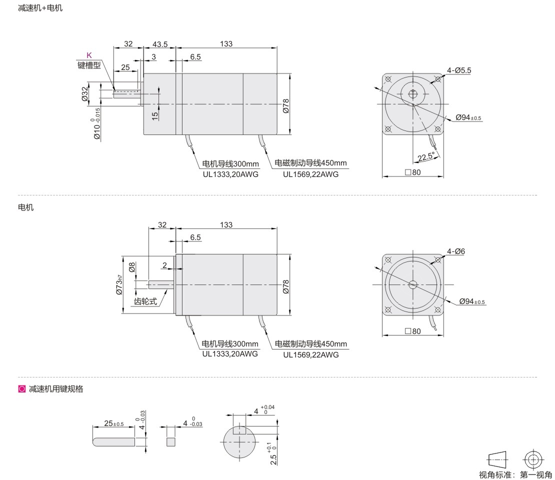怡合达自营 刹车定速电机 减速机 电机法兰尺寸80 功率25W GN组合型