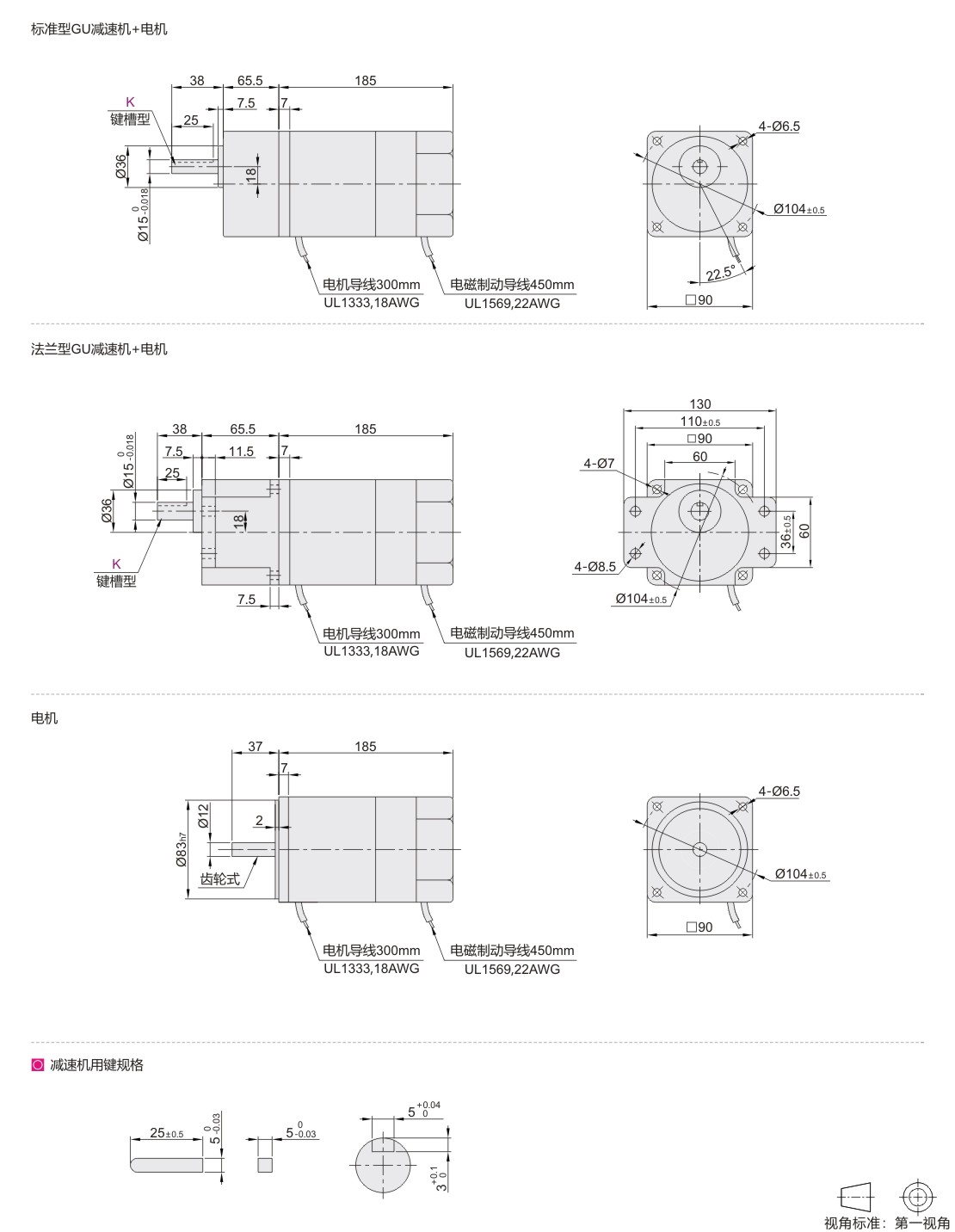 减速比12.5,15,18,90,100,120,150,180,200的电机反方向回转,其余减速比电机同一个方向回转。
