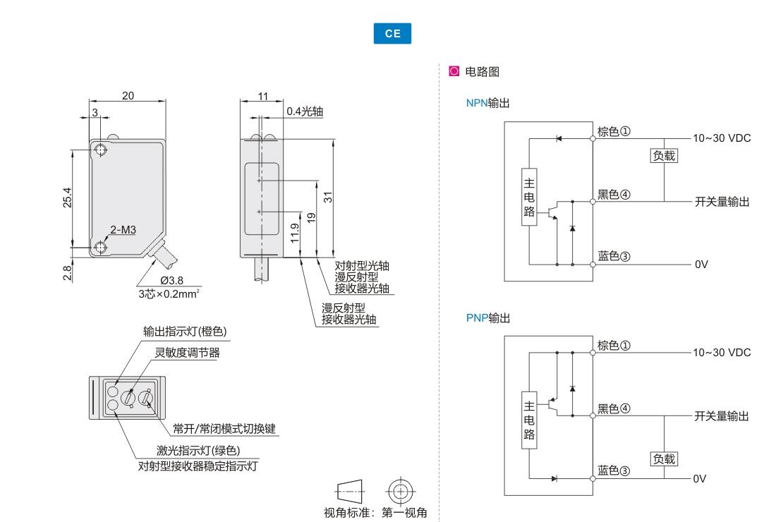 | 型号 | 输出功能 | 检测距离 | 开关模式 | 工作电压 | 光源类型 | 出线方式 | |