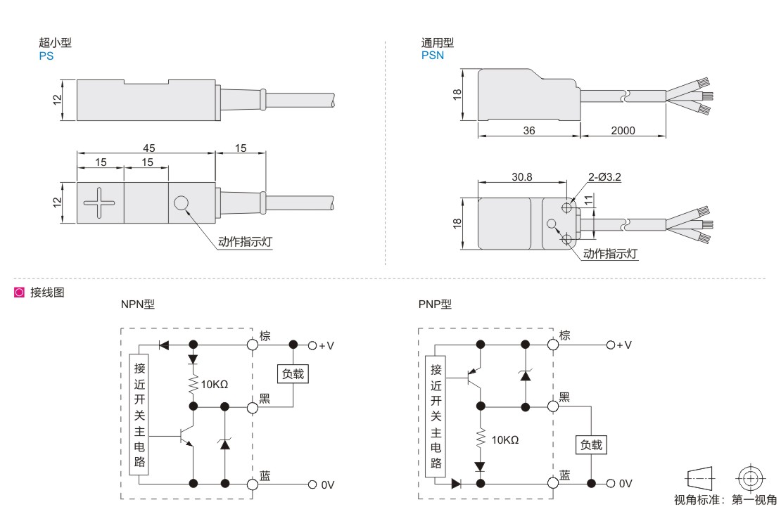 | PSN17-5DN | 18×18 | 5 | NPN | 常开 | 前面 | 700Hz | 直接出线 2M/3芯线 |