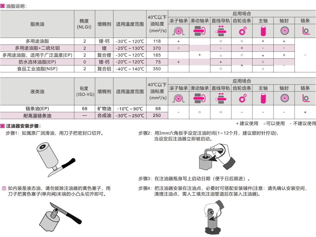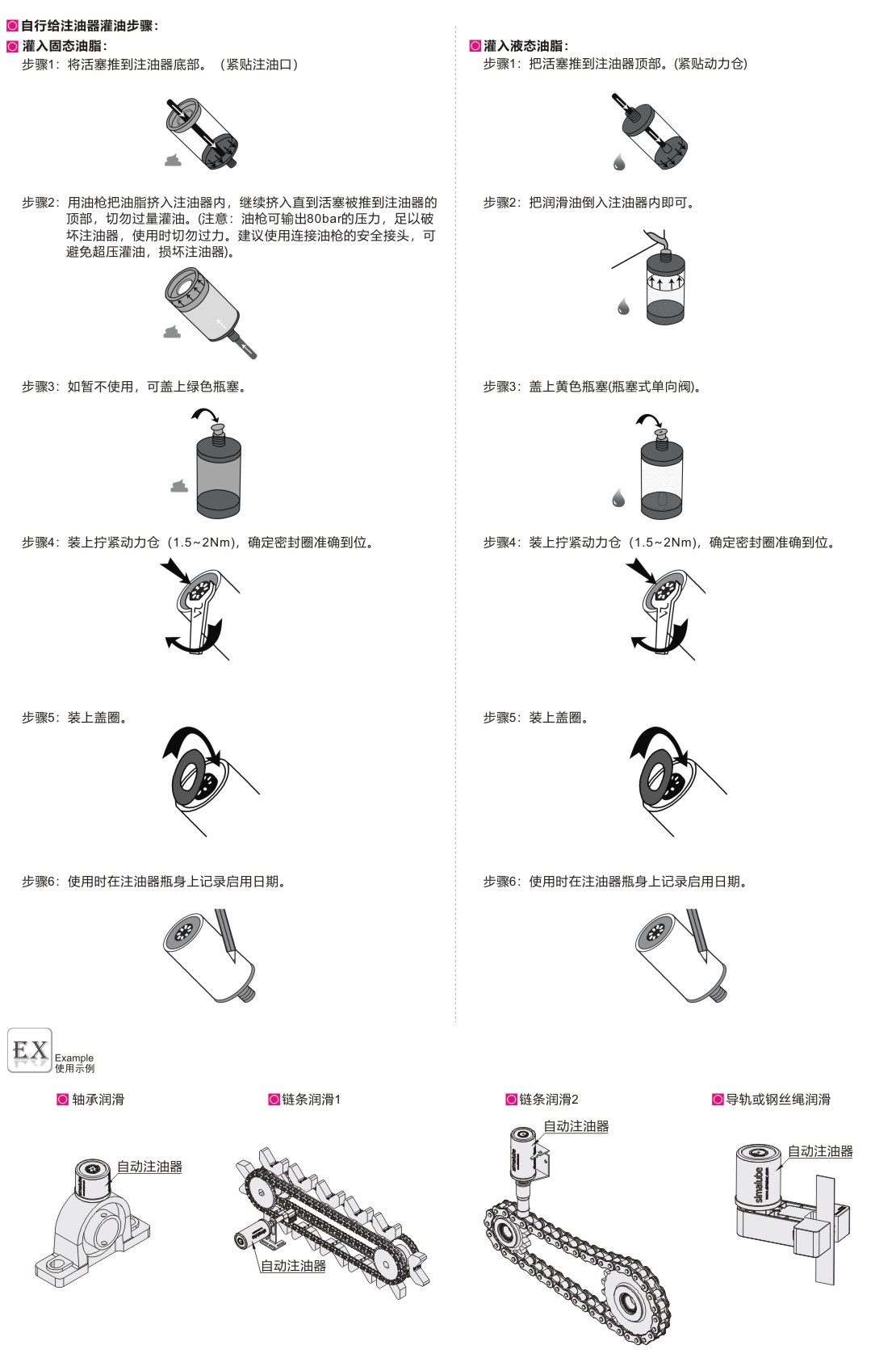 ● 使用前把注油点清理干净并且人工填充注油管道;