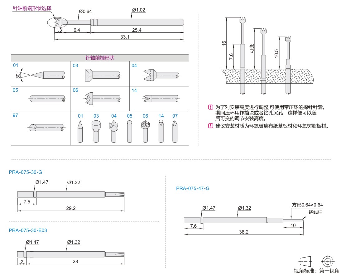 | PRA-075-30-G | 16.0mm/可变 | Ø1.39~1.40 | Ø1.30~1.32 | Ø1.31~1.33 | |