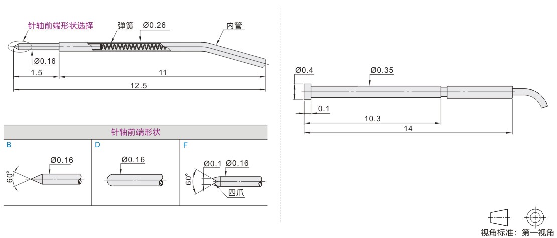 探针 针套 标准型 最小安装中心距0.5mm PCB测试用 最大行程1.5mm
