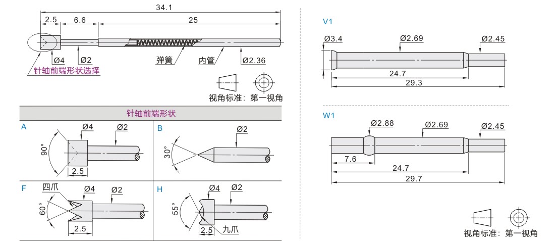 探针·最小安装中心距3.97/4.8mm