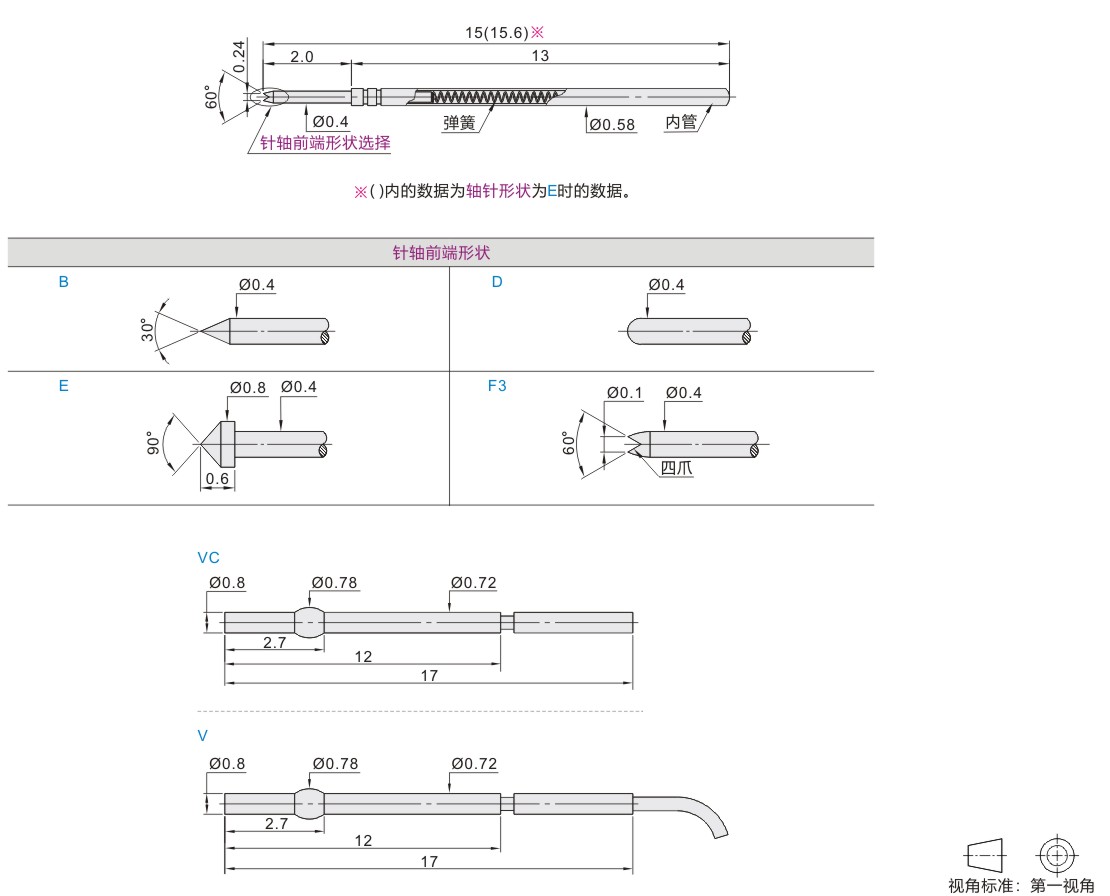 | 代码 | 类型 | 针轴 | 内管 | 弹簧 | 可选针套 | |