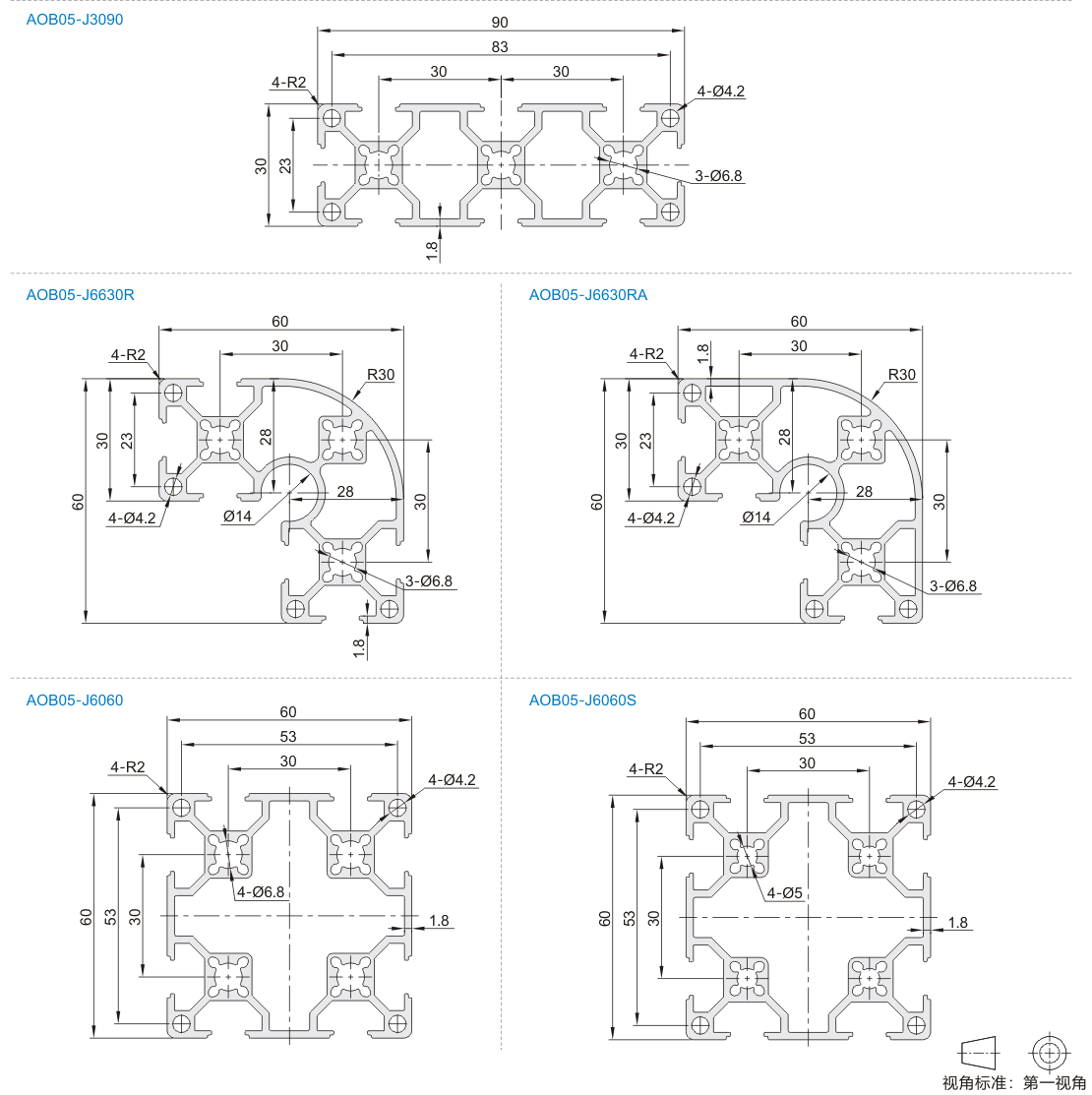 铝合金型材 欧标30系列 实用型 槽宽8.2 A6063-T5 喷砂氧化
