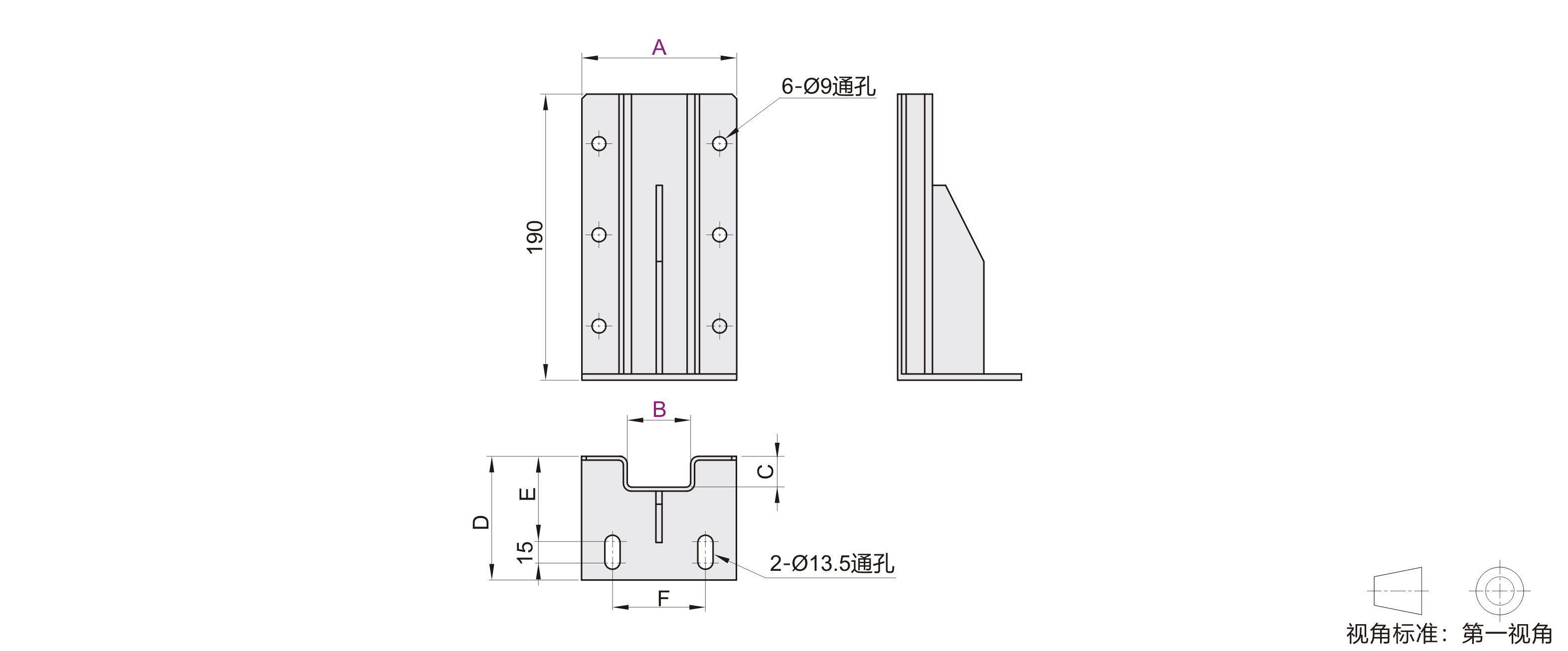 | 型号 | A | B | C | D | E | F | 适用 截面 |
