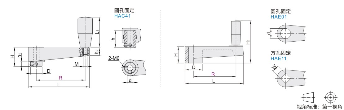 | HAC41 | 握柄固定型 | 圆孔固定 | PA6 | — | PF | 黑色 | S45C | S45C |