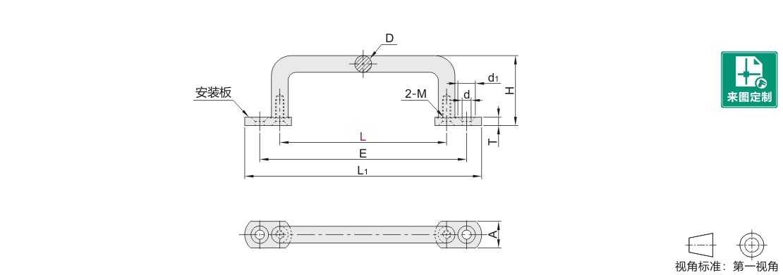 圆形拉手 外装式 前后装型 固定型 四锥孔安装 横向外延型