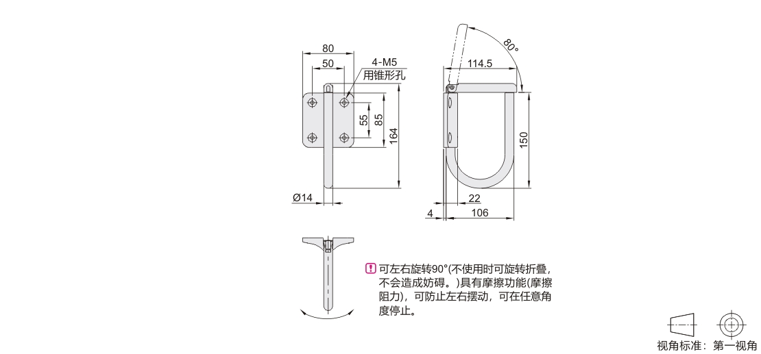 中载型挂钩 旋转型 竖向固定 SUS304 镜面抛光 四孔固定