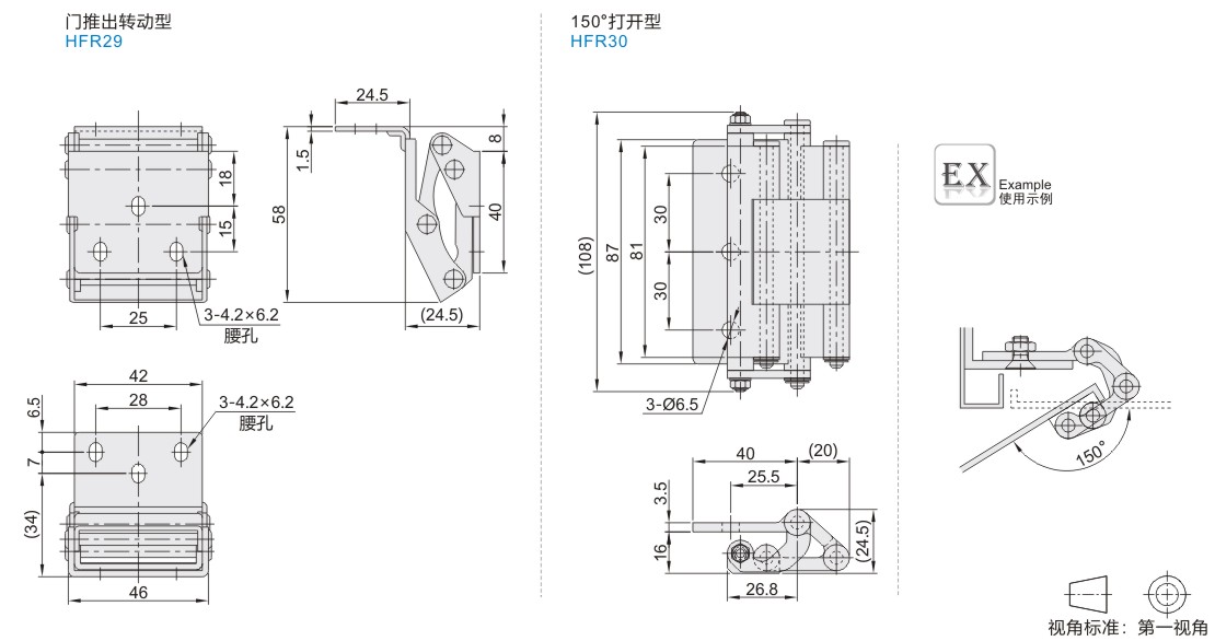不锈钢蝶形铰链 L型 四轴型 腰孔型 圆孔型 SUS304