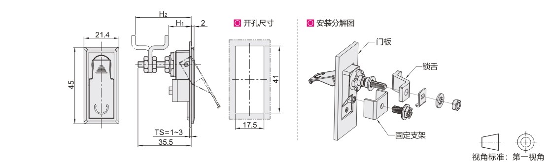 可调型平面锁 把手按压转动式 单点式 无锁芯 ZDC5