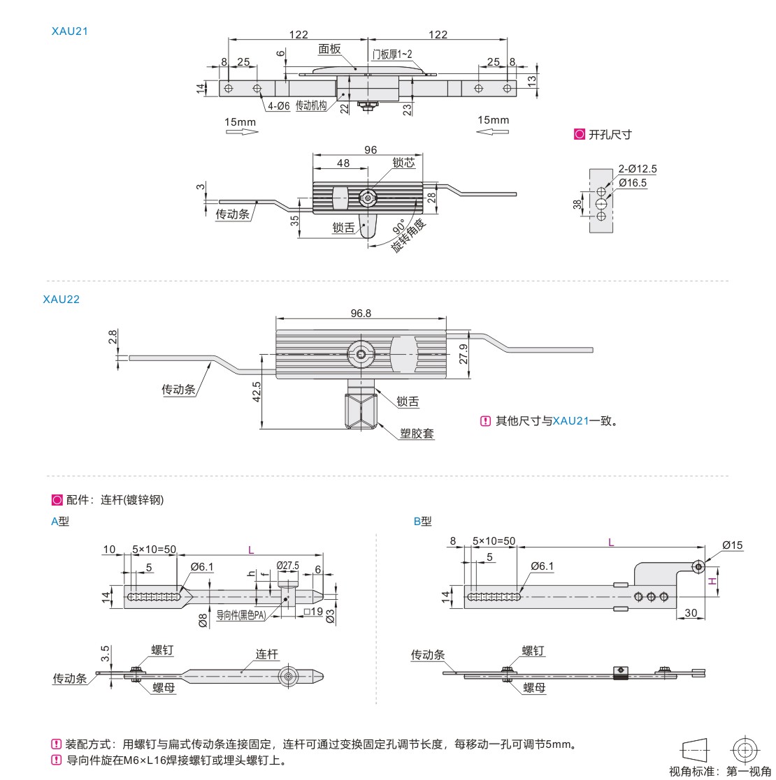 | XAU21 | 钥匙驱动型 | 双牙形锁芯 | ABS | Q235 | 喷漆 (银白) |