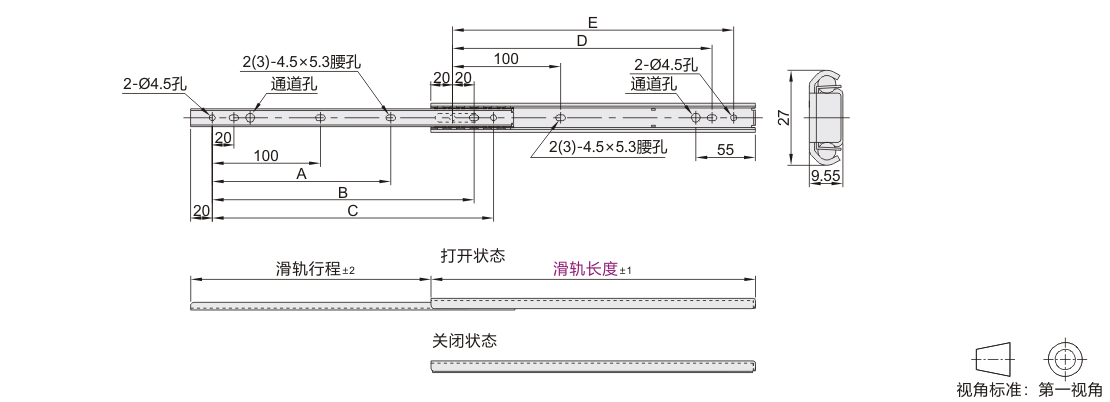 工业滑轨 27系列 二节式 SUS304