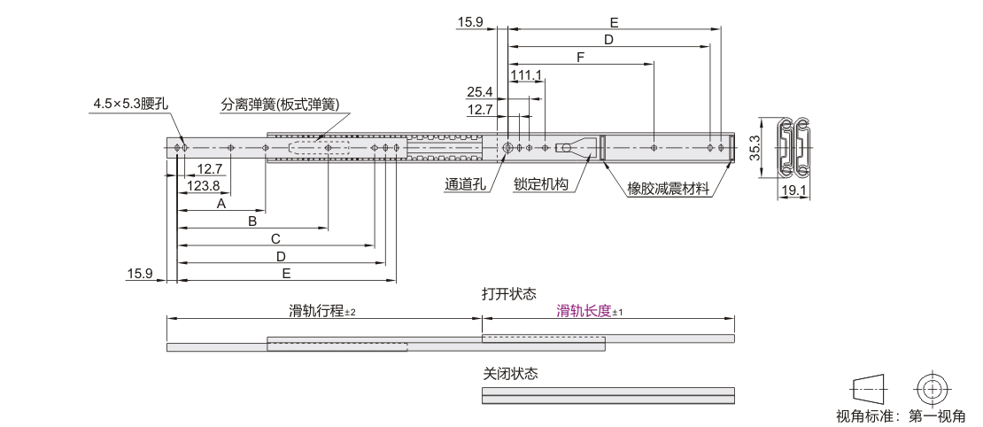 ●滑轨完全打开后,在全开状态下固定,在闭合方向施加5N(参考值)的力可解除保持。