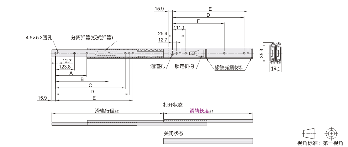 ●滑轨完全打开后,在全开状态下固定,在闭合方向施加5N(参考值)的力可解除保持。