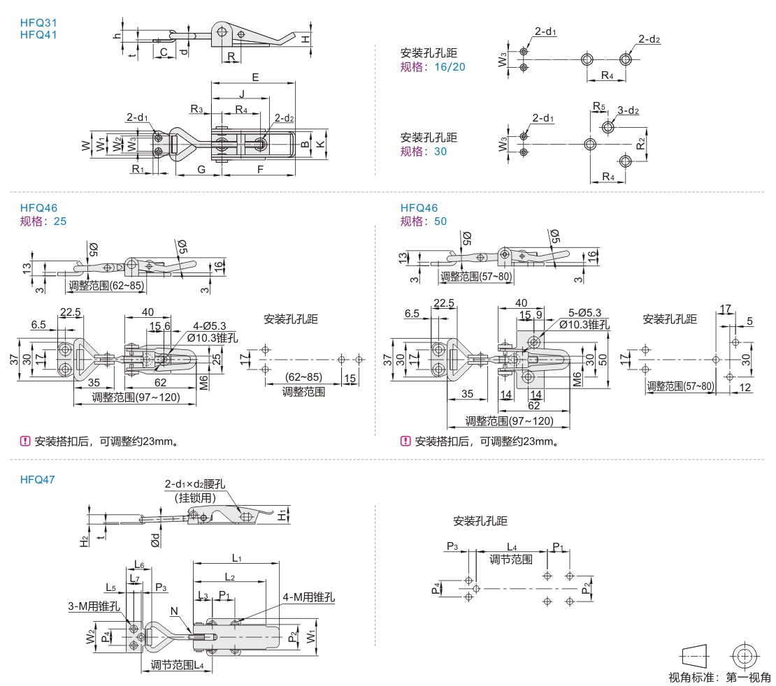 | HFQ31 | 中载型 | 三角型 | SPCC | 镀铬 |