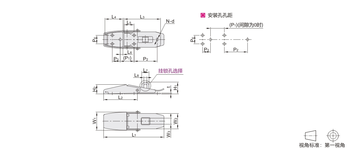 标准型搭扣 轻载型 挂锁孔可选 SUS304 拉丝 盒型