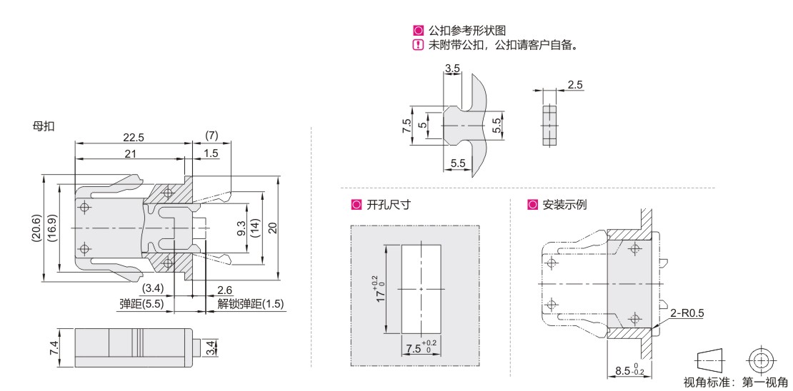 按压式球形扣 嵌入型 ABS 推出力18~35N