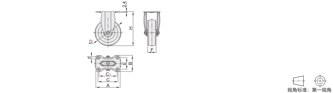 经济型美式系列中型脚轮 容许载荷80-130kg 固定型
