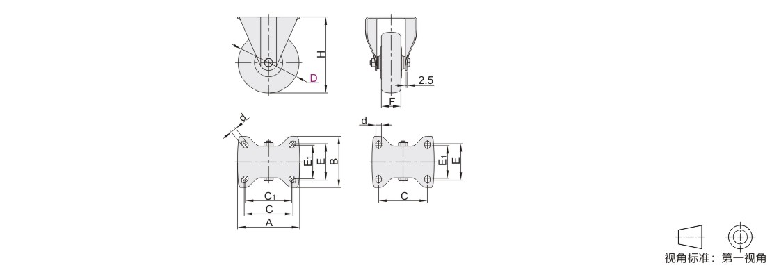 德国系列中型脚轮 容许载荷150-300kg 固定型