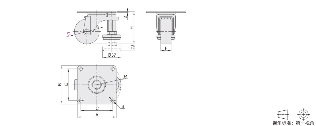 常规水平调节脚轮 容许载荷30-40kg 平底活动型 带偏心调整块