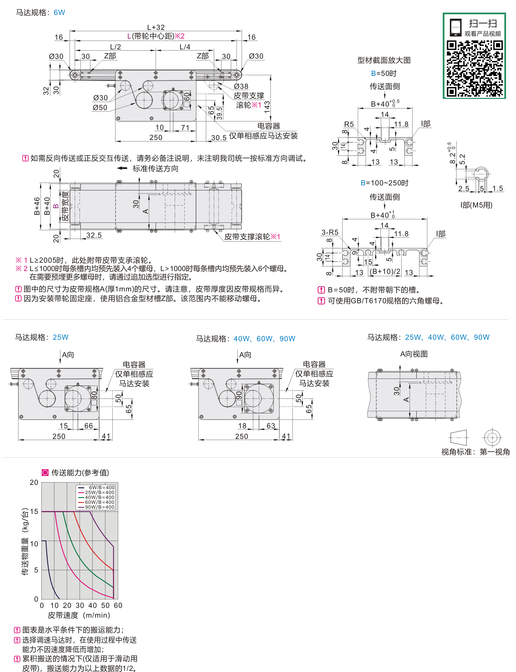经济型 平皮带输送机 带导条防跑偏型 中间驱动双槽型材 带轮直径30mm