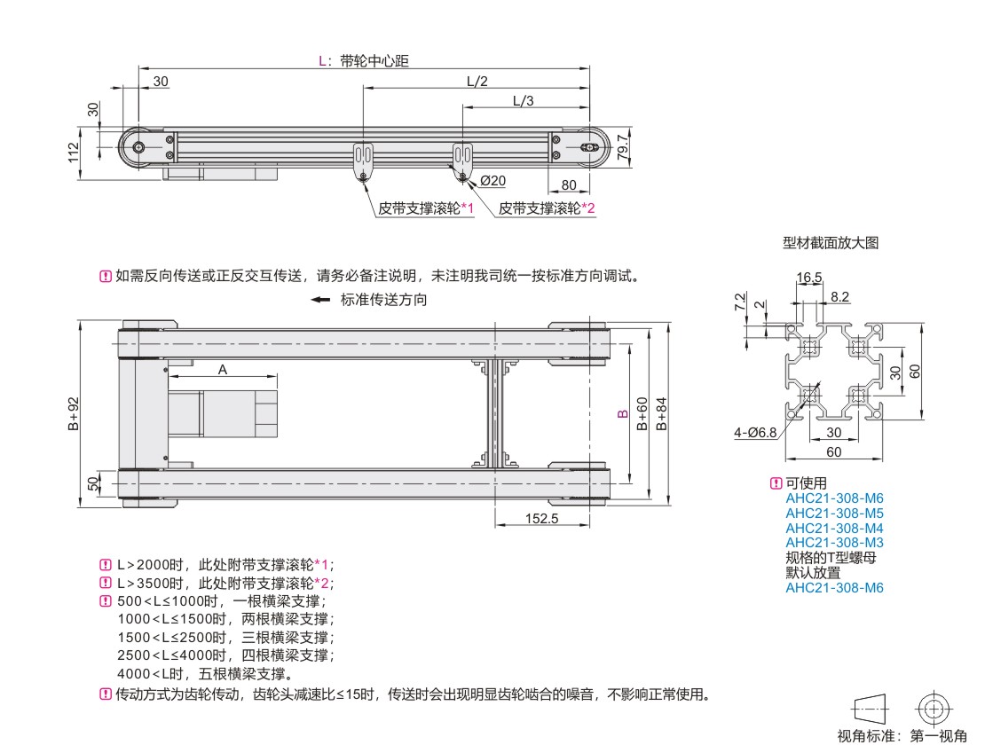 同步带输送机 重载马达内置型 头部驱动双槽型材 轮直径80mm