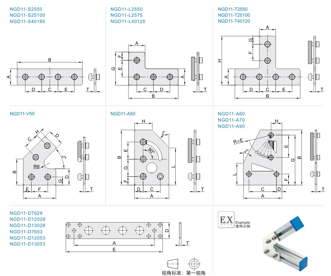 | NGD11 | 型材连接板 | 不锈钢 | — |