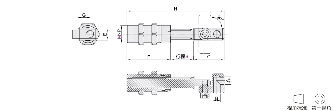 真空吸附系统 伸缩杆 弹簧内置 不可旋转型 弯臂型 螺纹型 内螺纹接口 铝材质 阳极氧化