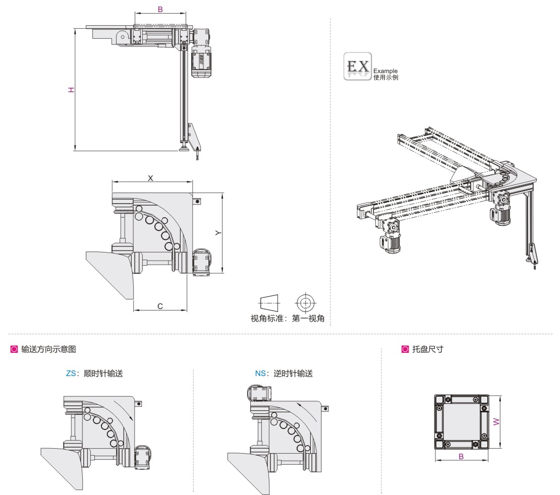 圆带转弯机 配套线体组件 转弯角度90° 负载能力20Kg 本色氧化处理