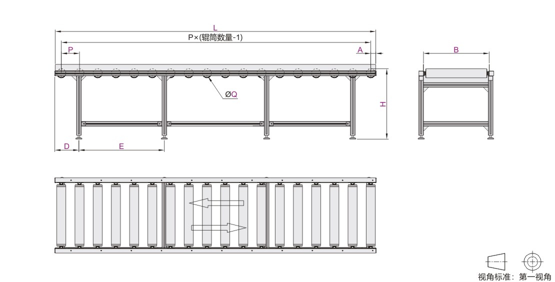 对于要求更平稳第输送货物,可以同时设计4支以上的的滚筒支承,一般来说,同时支承货物的滚筒越多,输送越平稳。