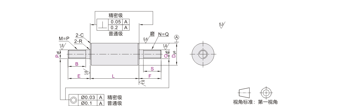 精密级导向轴的螺纹根部带有研磨退刀槽(最宽1.5mm,最深0.1mm)