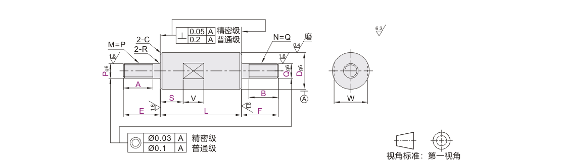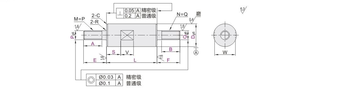 精密级导向轴的螺纹根部带有研磨退刀槽(最宽1.5mm,最深0.1mm)