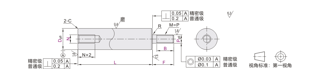 精密级导向轴的螺纹根部带有研磨退刀槽(最宽1.5mm,最深0.1mm)