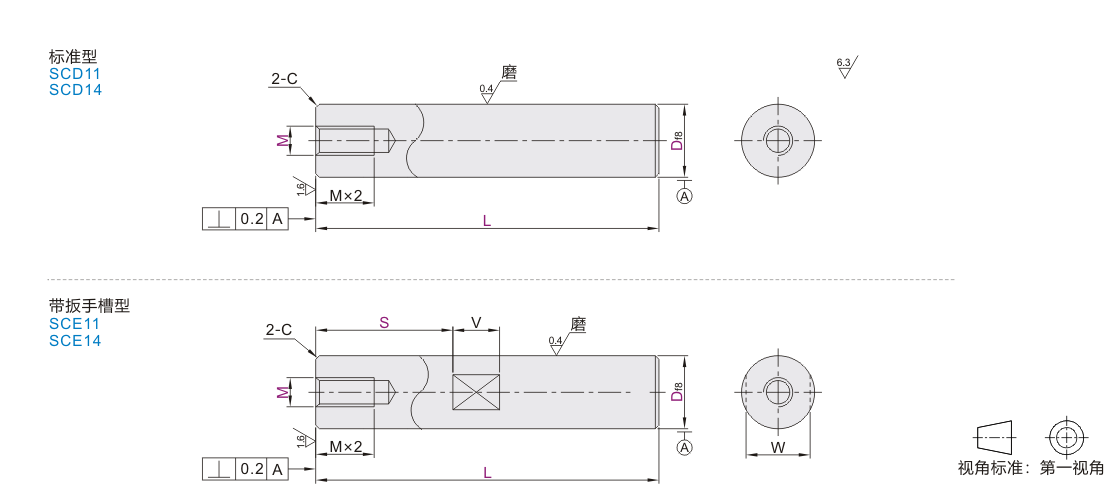 | SCD11 | SCE11 | 普通级 | f8 | 45 | S45C | — | 镀硬铬,镀层硬度HV750~ 镀层厚度3µm~ |