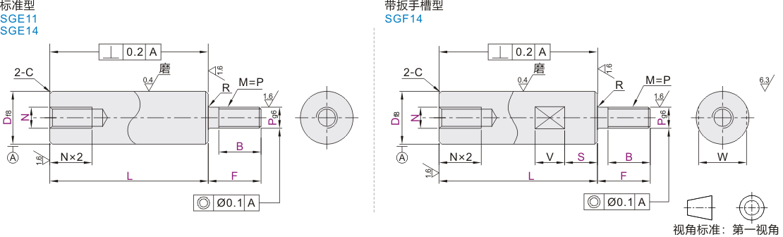 | (D公差f8) SGE11 SGE14 |