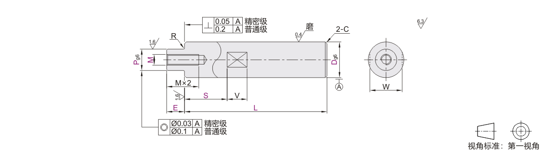 精密级导向轴的台阶部带有研磨退刀槽(最宽1mm,最深0.1mm)。