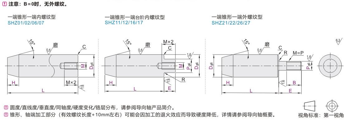 实心导向轴 一端锥形一端内螺纹型 一端锥形一端台阶内螺纹型 一端锥形一端外螺纹型 D公差g6