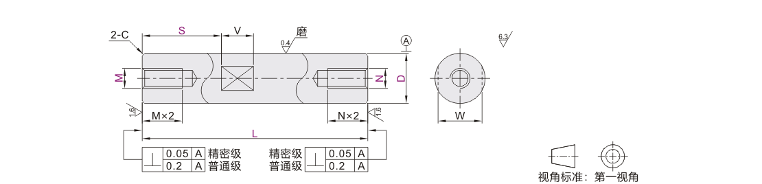 医疗 导向轴 两端内螺纹型·带扳手槽型 D公差g6