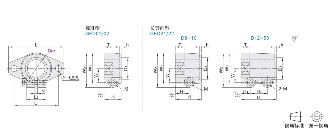 | GFD21 | 长导向型 | 发黑 | 内六角圆柱头螺钉 | |||