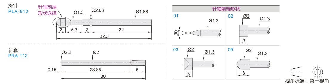 | PRA- 112 | ICT测试用 | 针套 | 黄铜 | 镀金 | PLA-912系列 |