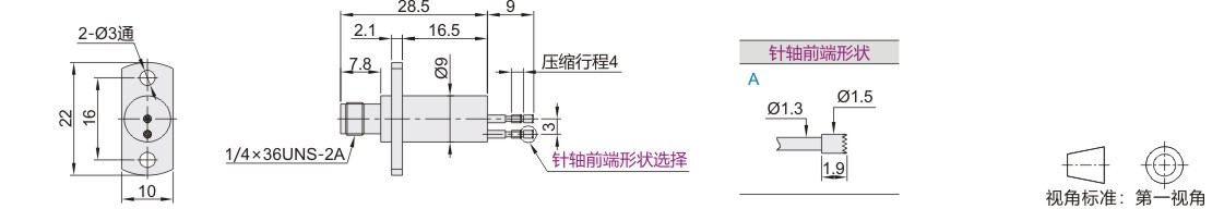 探针 高频测试用 最小安装中心距 2250mil/53.3mm 最大工作行程4.0mm