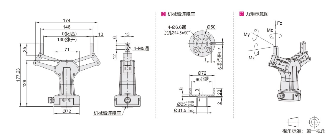 电动夹爪 驱动器内置型 Y型连杆型 铝合金材质 表面阳极氧化