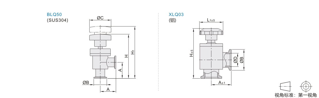 真空级阀门 KF标准 手动式 真空挡板阀•L型