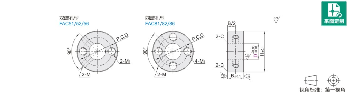 | FAC51 | FAC81 | 45 | S45C | 发黑 | 2个紧定螺钉 |
