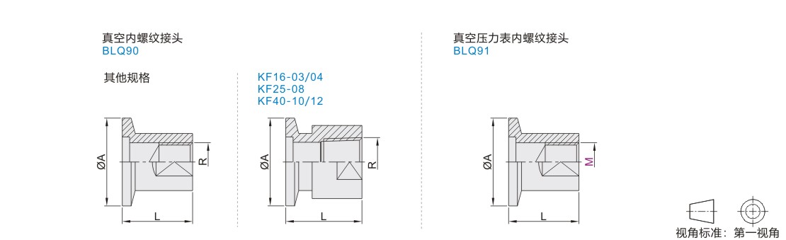 真空管道类配件 真空内螺纹接头/真空压力表用内螺纹接头 KF标准